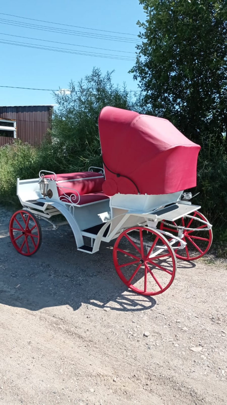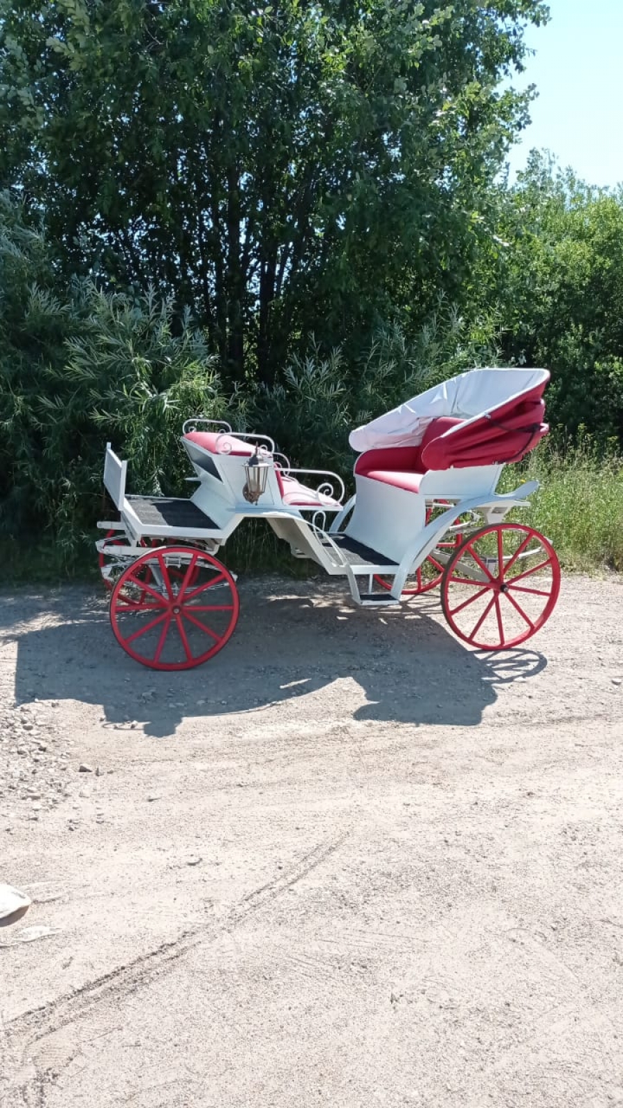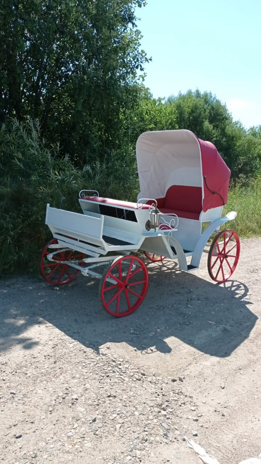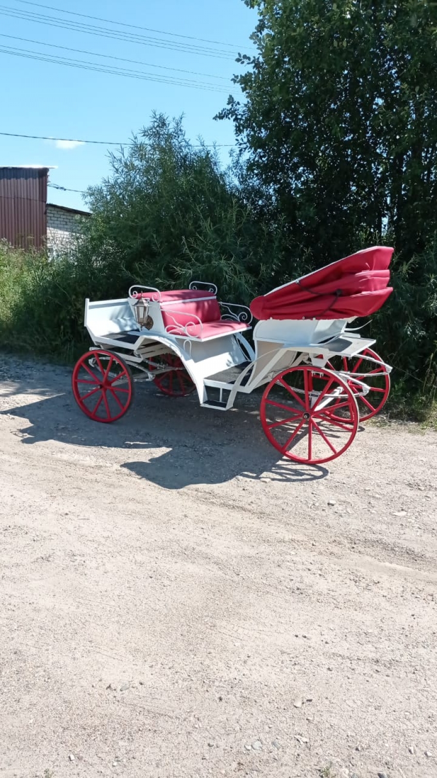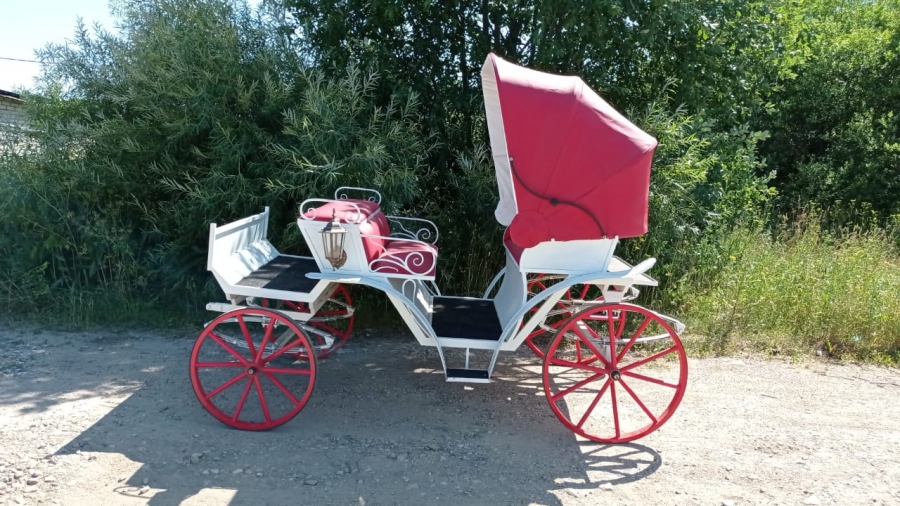 Фаэтон украшен декоративными кованными элементами и оснащен светодиодными фонарями. Это усовершенствованная модель фаэтона "Праздничный", который пользуется популярностью среди наших клиентов. Цветовая гамма может быть любая по вашему запросу.